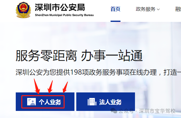 办理入口 官网办理流程 第一步:进入深圳公安官网(http://ga.sz.gov.cn/),点击“个人业务”